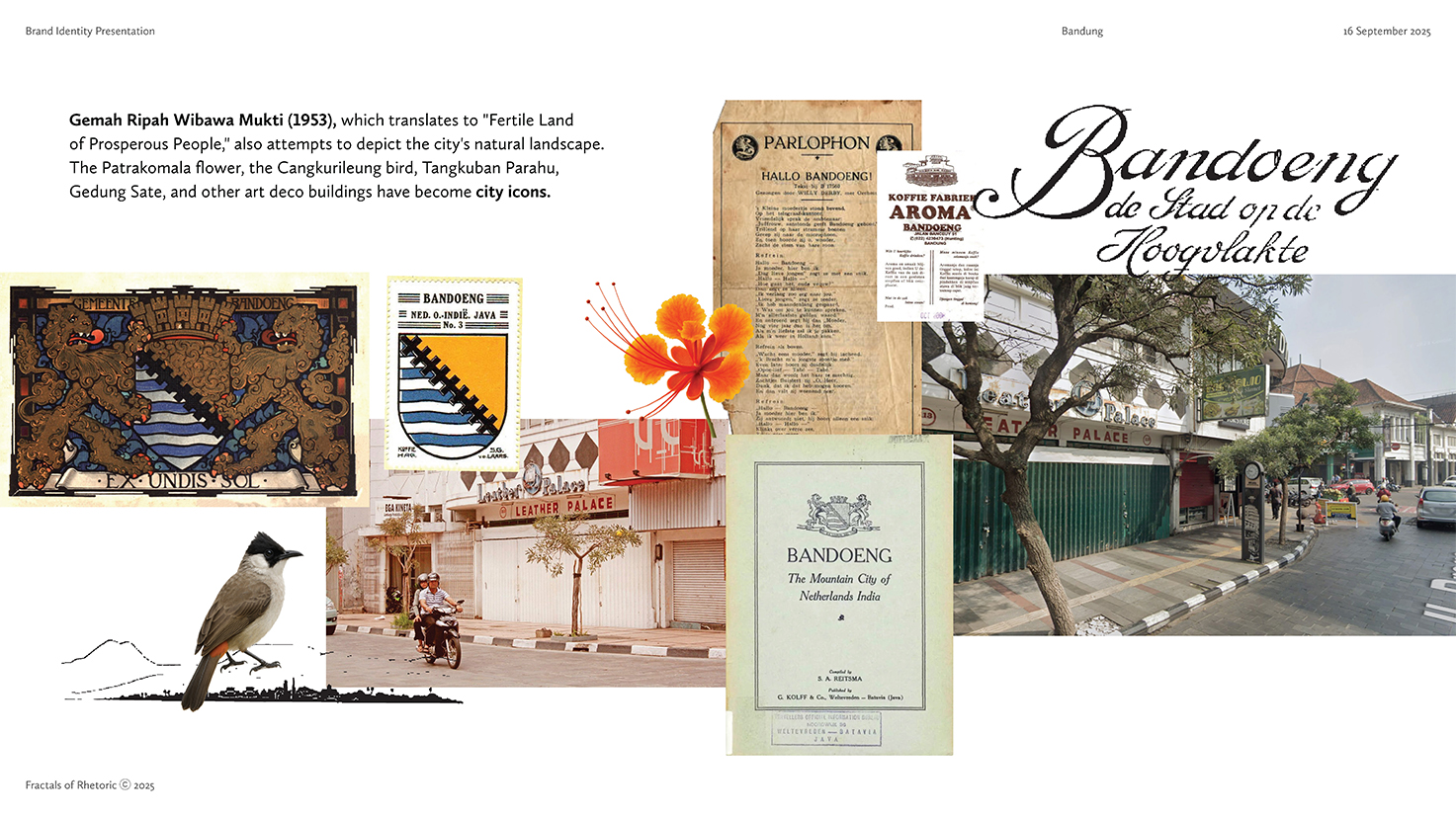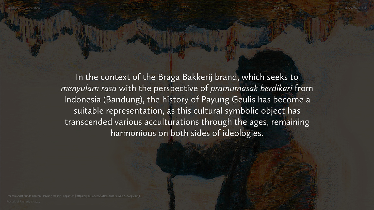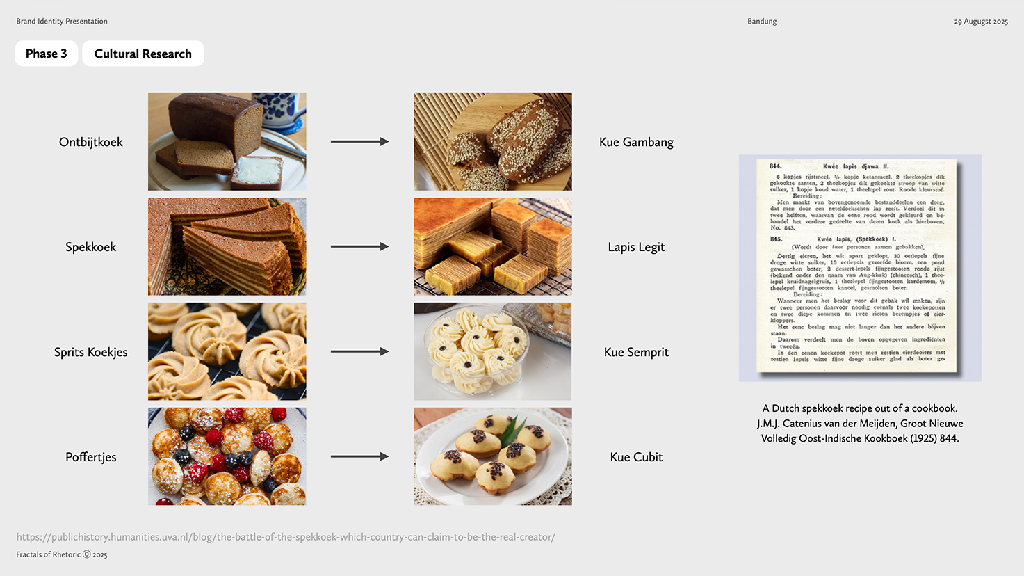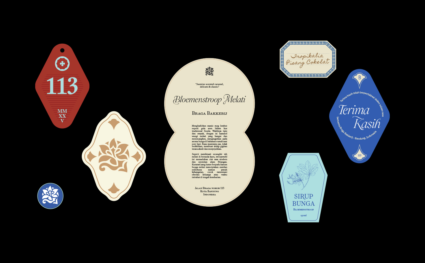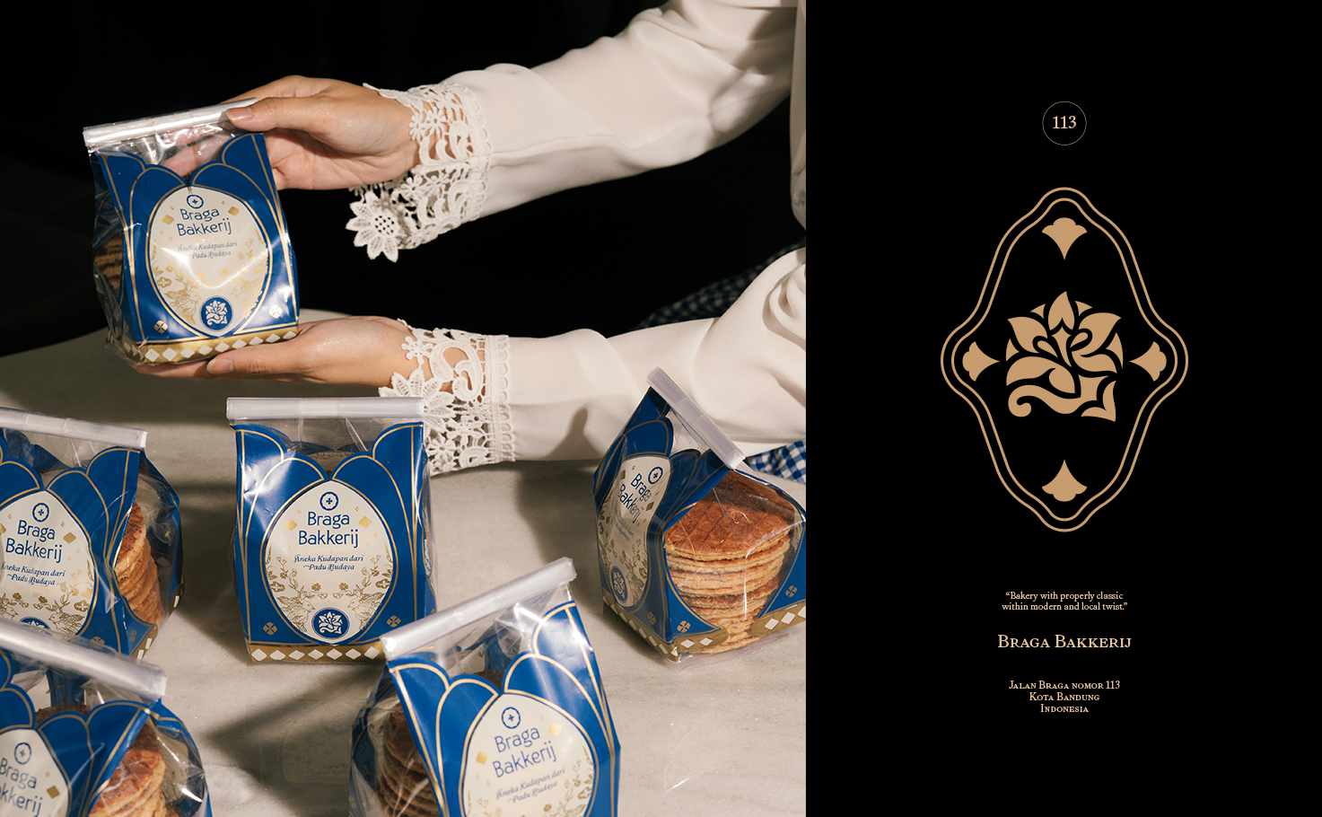 Braga Bakkerij is an acculturation-driven bakery that celebrates the shared culinary story of our archipelago for modern consumers through authentic techniques, cross-cultural flavours, and design rooted in Braga’s historical character. For urban explorers, cultural enthusiasts, and curious taste-seekers in Bandung (Indonesia) and beyond, Braga Bakkerij is a Dutch–Indonesian bakery that reinterprets heritage recipes through local ingredients and contemporary Indonesian sensibility, because we believe rasa is not just flavor—it is memory, encounter, and identity woven across cultures. The foundation of Braga Bakkerij rests on harmonious acculturation, recognizing that Dutch culinary techniques and Indonesian ingredients have long shaped one another over time. The strategy situates the bakery within that continuum, allowing it to stand naturally within Braga Street’s cultural landscape while expressing a distinctly Bandung point of view. This perspective extends into the identity system, where references such as Payung Geulis, Art Deco letterforms, and tropical elements like Tabebuya flowers are composed into a cohesive visual language. Each element was selected to ground the brand in Bandung’s memory while allowing the bakery to articulate its own contemporary voice.