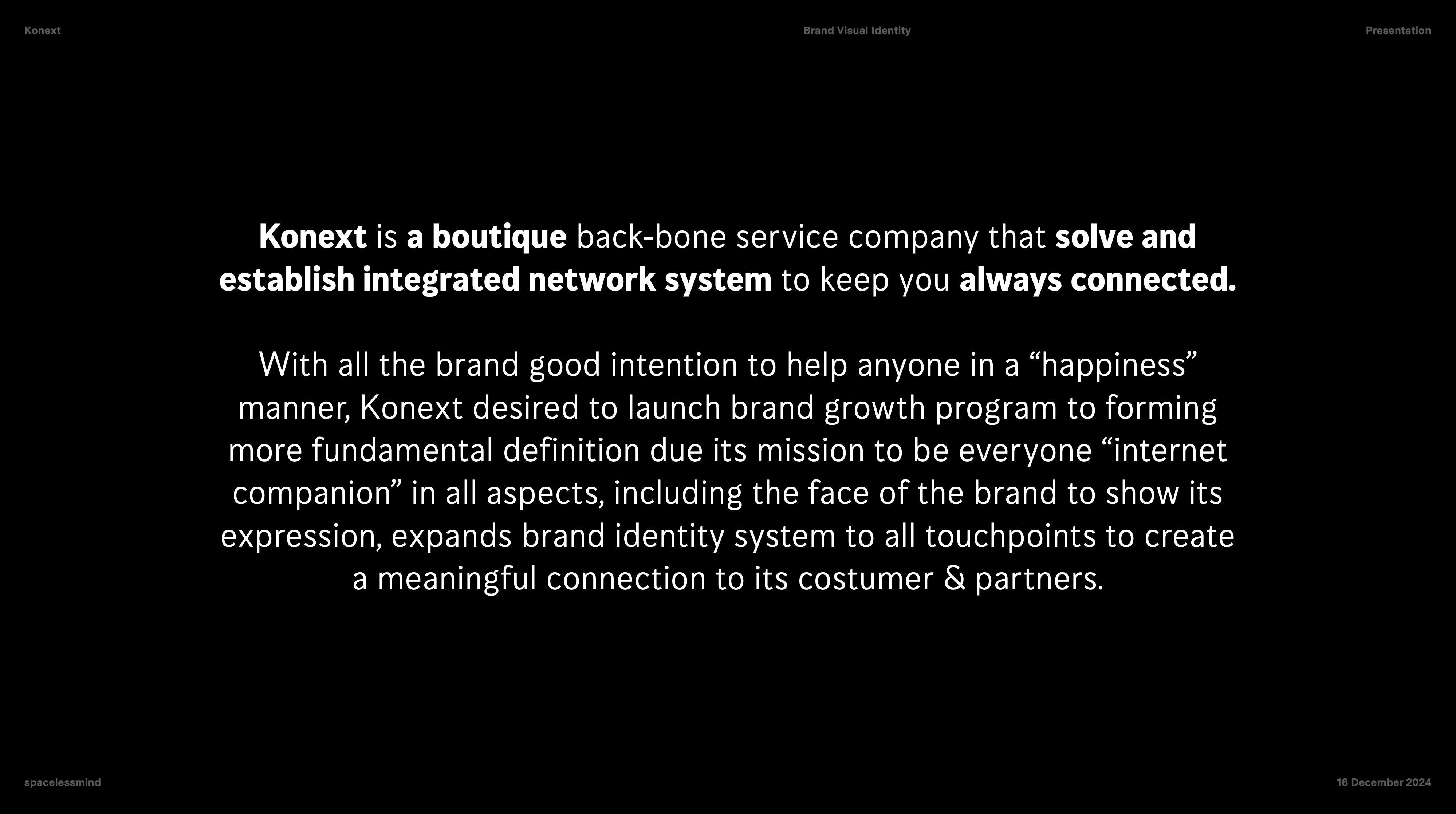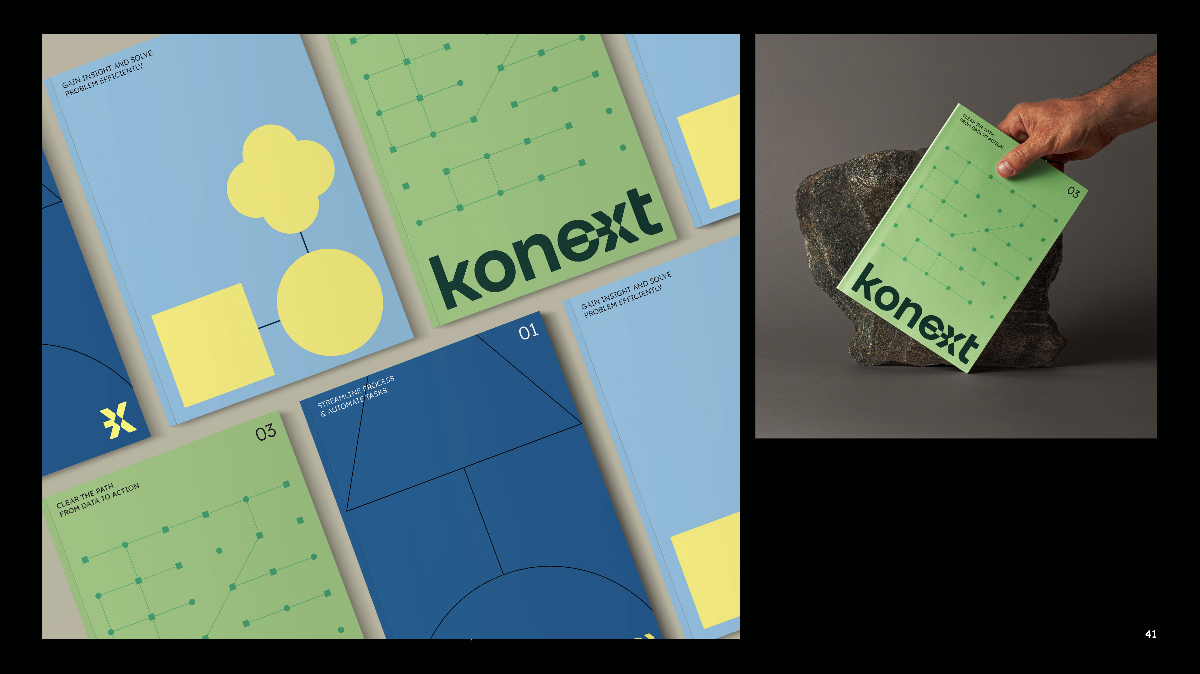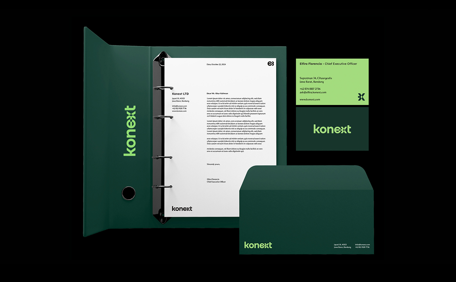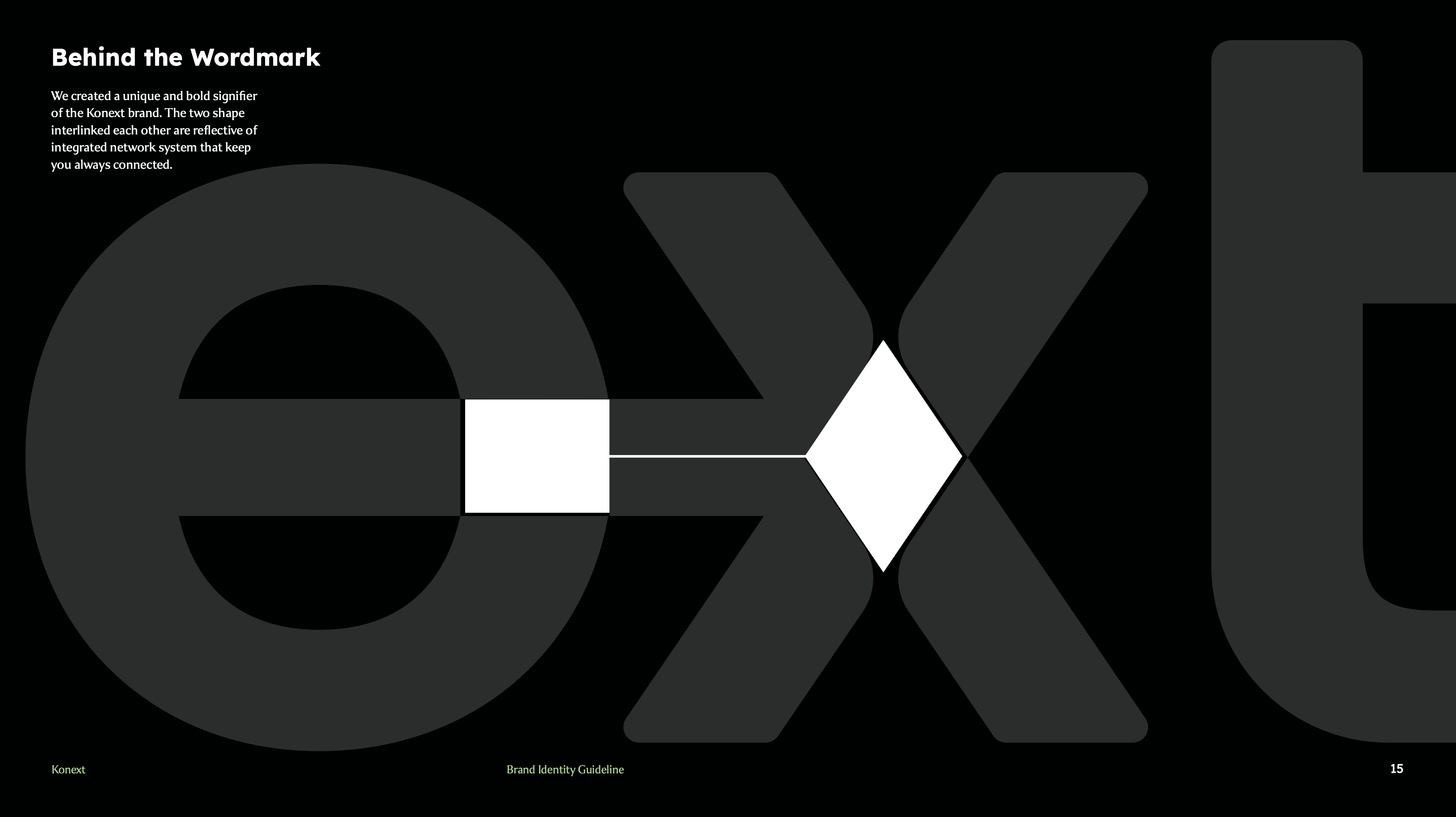 The brand identity reflects this human-centered approach to technology, translating complex infrastructure into approachable, meaningful experiences. Built on interlinked forms, modular structures, and scalable visual systems, Konext embodies the idea of connection not only as a technical function but as a relationship. Its tone positions the brand as a “friendly staff” figure—professional yet accessible—who actively assists clients in utilizing the latest technologies to solve diverse network challenges. From typography and color systems to graphic elements inspired by network architectures, every component communicates clarity, adaptability, and growth, ensuring the brand remains consistent while evolving alongside the technological landscape.